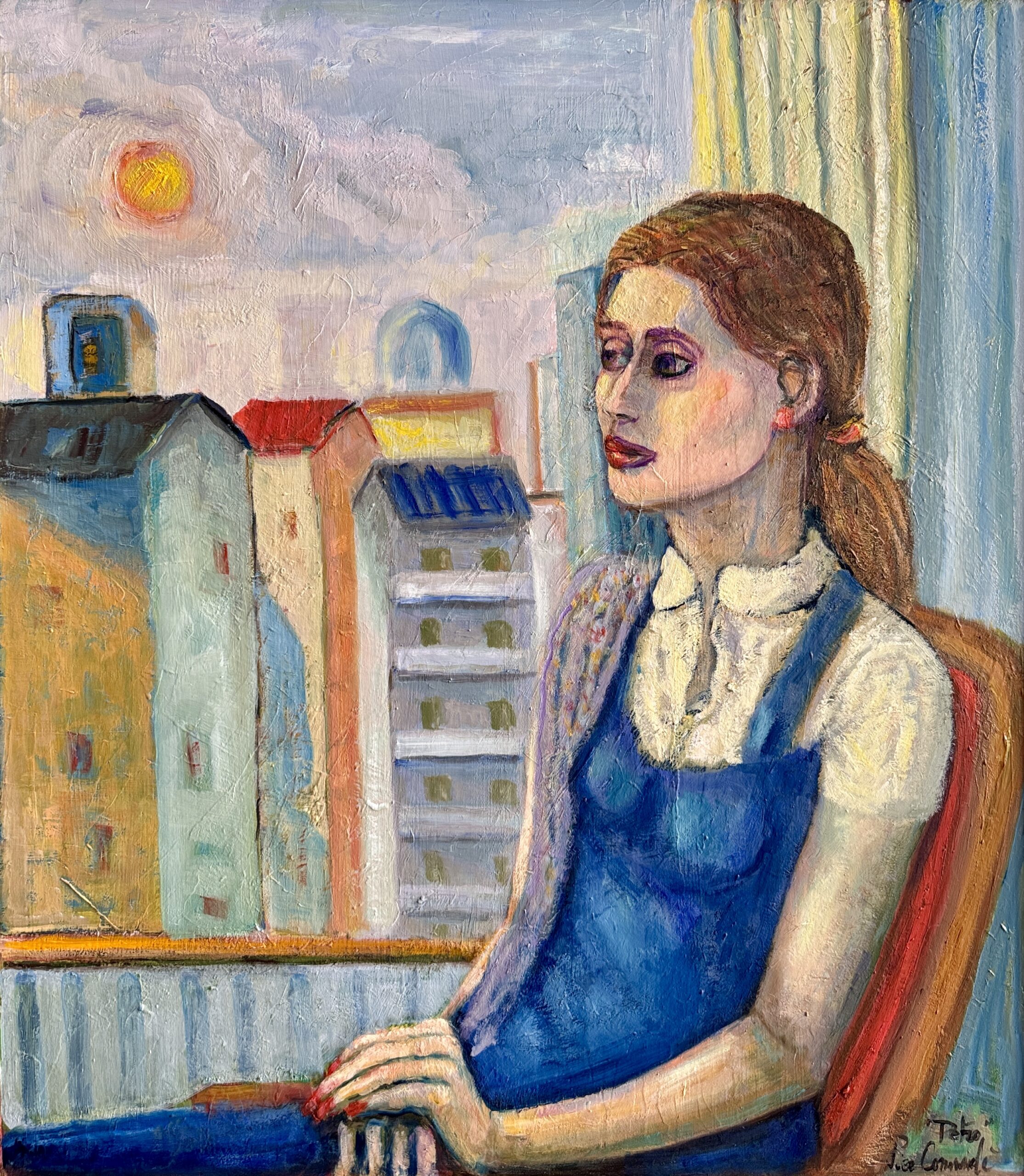 Ragazza alla finestra e sole rosso, 2021 - Piero Comandè